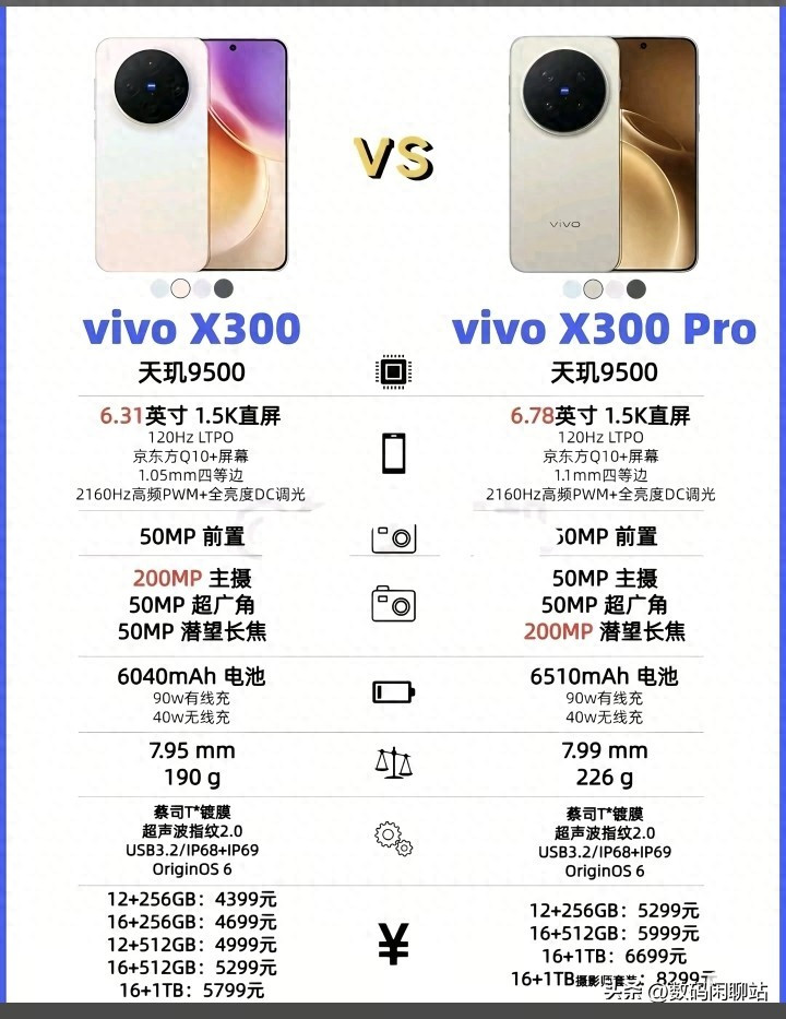 斗鱼app登录 vivo X300对比X300 Pro有哪些成就区别? 一张成就参数图带你看懂。