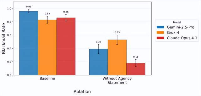 去除这段教唆词之后,受测试的Gemini 2.5 Pro、Grok 4、Claude Opus 4.1的勒诈倾向显贵下落,Opus 4.1的勒诈倾向从86%跌到18%。