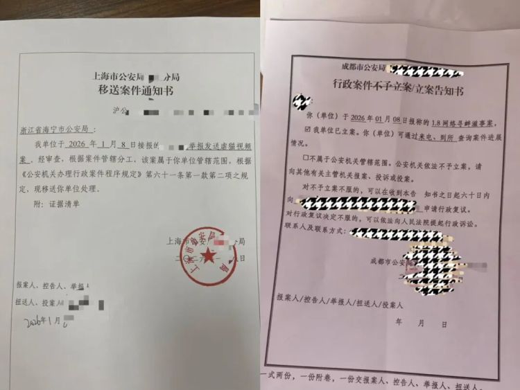 警方立案通知书 受访者提供