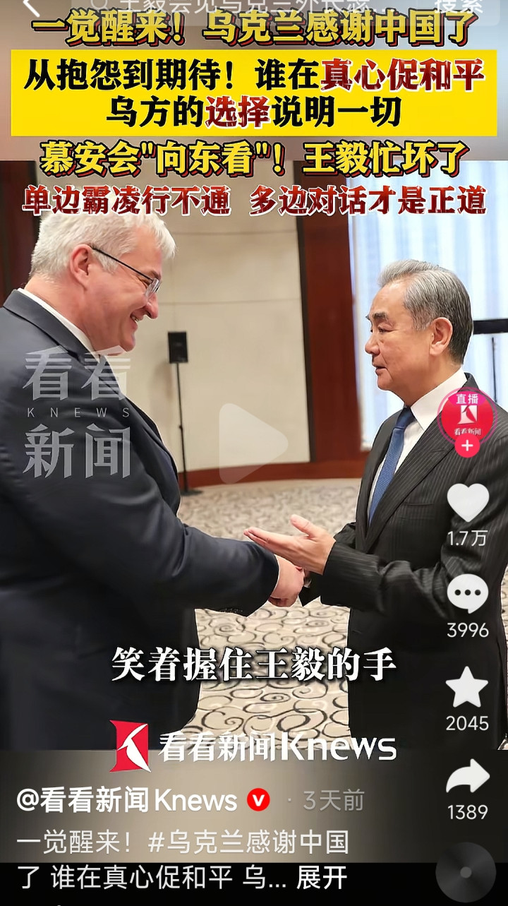 本段小结:乌克兰在慕尼黑主动对华示好,是尽心运筹帷幄的酬酢动作,中枢是战场窘境+西方靠不住,不得不转向中国寻求破局。