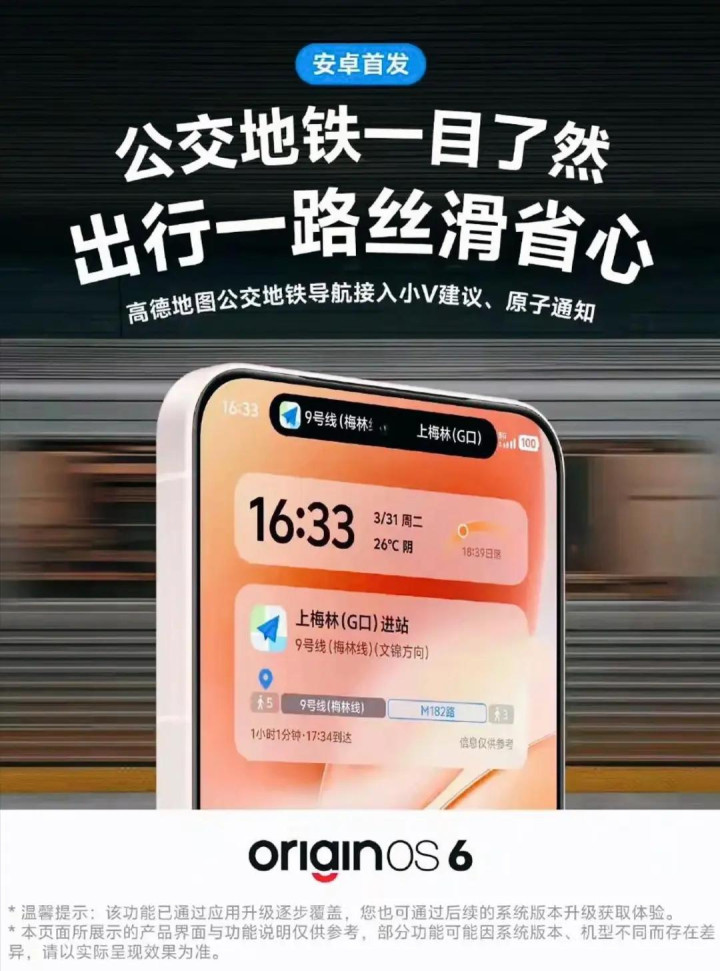 OriginOS 6的地铁导航界面 · 展示OriginOS 6地铁导航的手机界面
